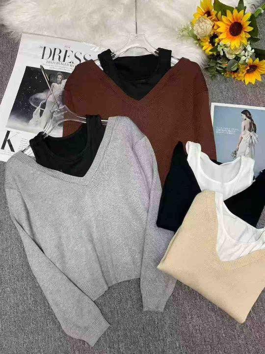 秋冬新款小众设计感假两件长袖内搭外穿针织套头毛衣,独立包装,均码面料柔...