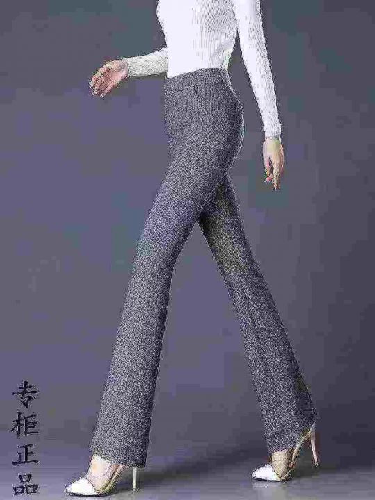 ️全清6.9 秋冬加绒女装条纹长裤,高腰显瘦喇叭裤,设计感垂感直筒微喇裤...