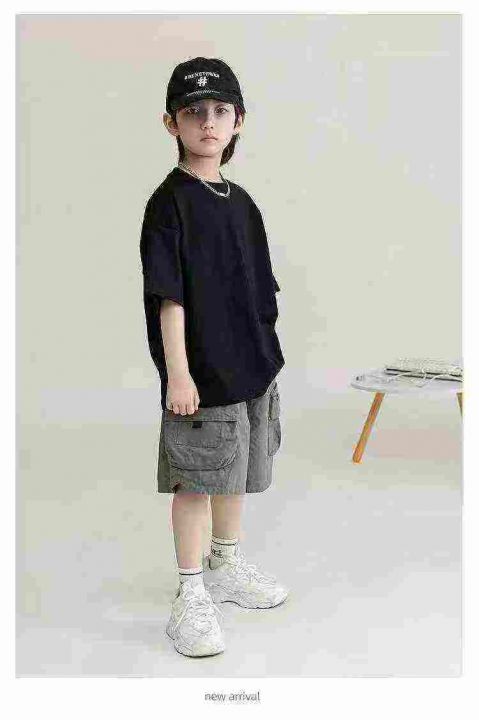 7576件\'夏季新款中大童韩版纯色凉感半袖体恤儿童上衣,20件一包装,黑白两...