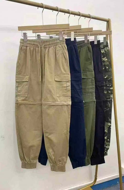 424件棉质可拆卸两用束脚工装裤。松紧抽绳设计,面料舒服,实体店品质。S一...