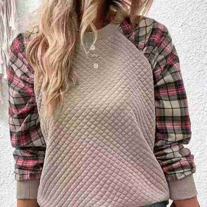 外贸原单格纹插肩袖长袖卫衣,单款单色,独立包装,数量100件,S-3XL码,福...