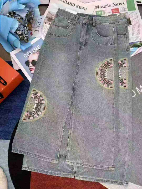中国风宽松显瘦刺绣开叉长牛仔裙,单款单色2个长度,独立包装,数量300条XS...