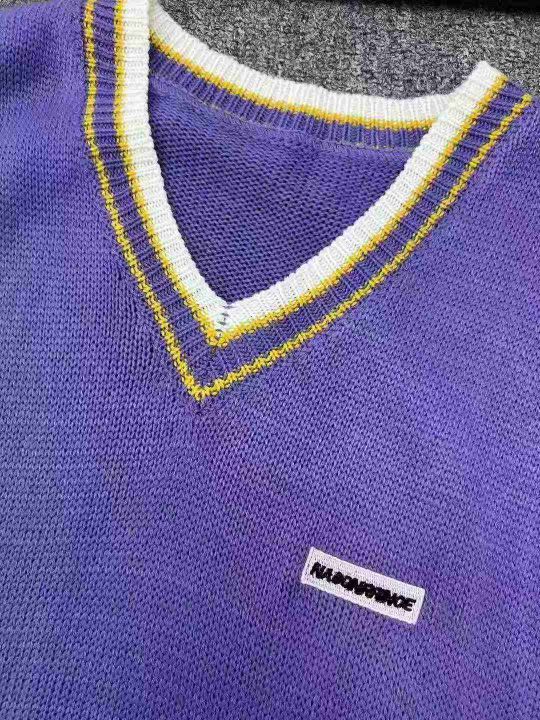 秋冬新款刺绣复古慵懒风圆领撞色宽松百搭套头毛衣,独立包装,均码面料软糯...