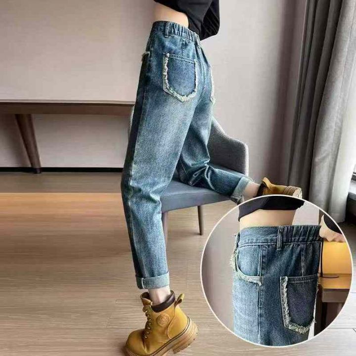 高弹力加绒牛仔裤☕️240条全清15.8元,25-31码数,高腰加绒加厚牛仔裤女宽...