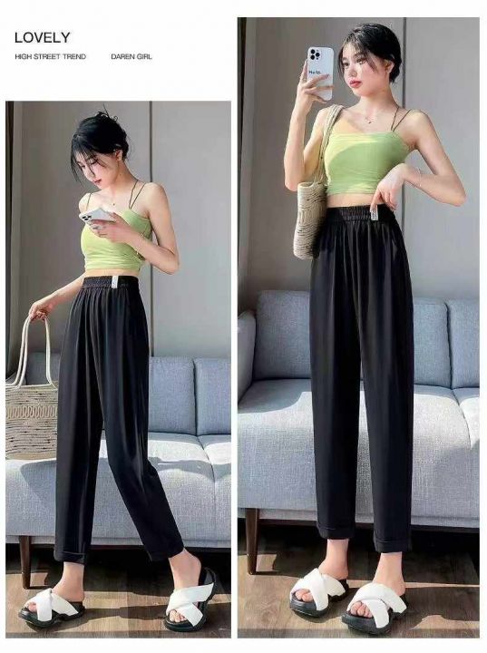 天猫精选720条 天猫在售款 夏季薄款冰丝裤子垂坠感显瘦哈伦休闲直筒烟管西...