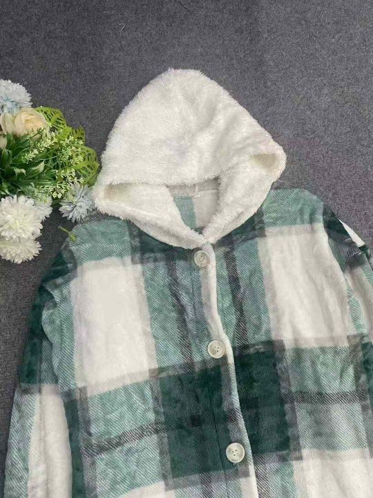 117件连帽格纹毛绒外套。单款单色,面料柔软舒适保暖,品质好。S一2XL,独立...
