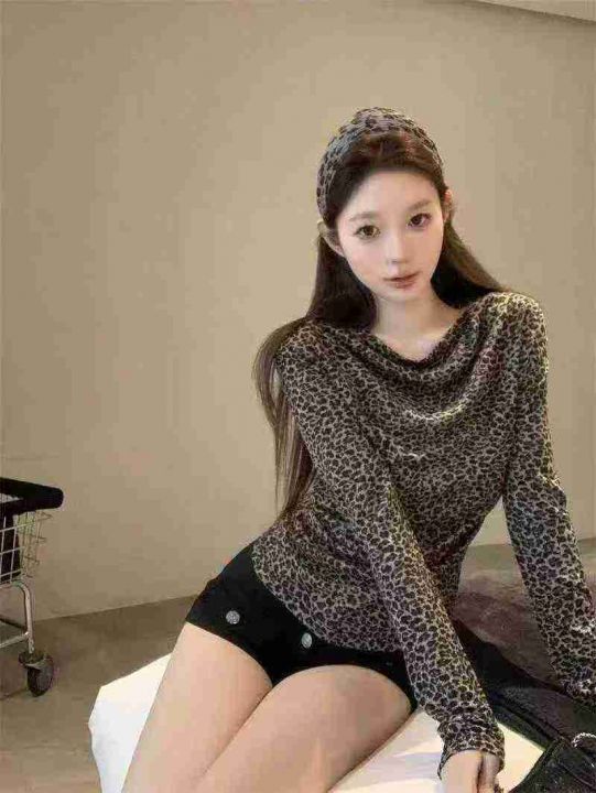上新全清:5.8一件复古豹纹荡领设计感修身长袖上衣,[爱心]70件左右,款号#...