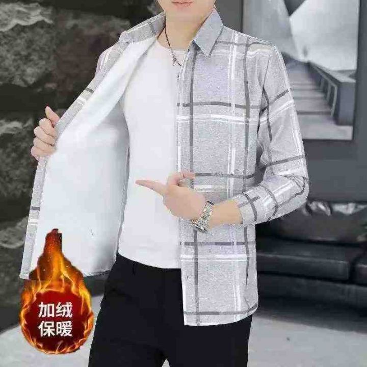 男士长袖衬衫秋冬季韩版潮流帅气加绒衬衣男上衣服,整款4个花色,M-3XL码,...