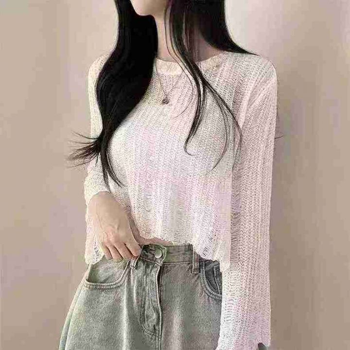 新款镂空上衣配吊带的小外搭韩版纯色宽松设计感长袖针织衫潮,整款4色,独...