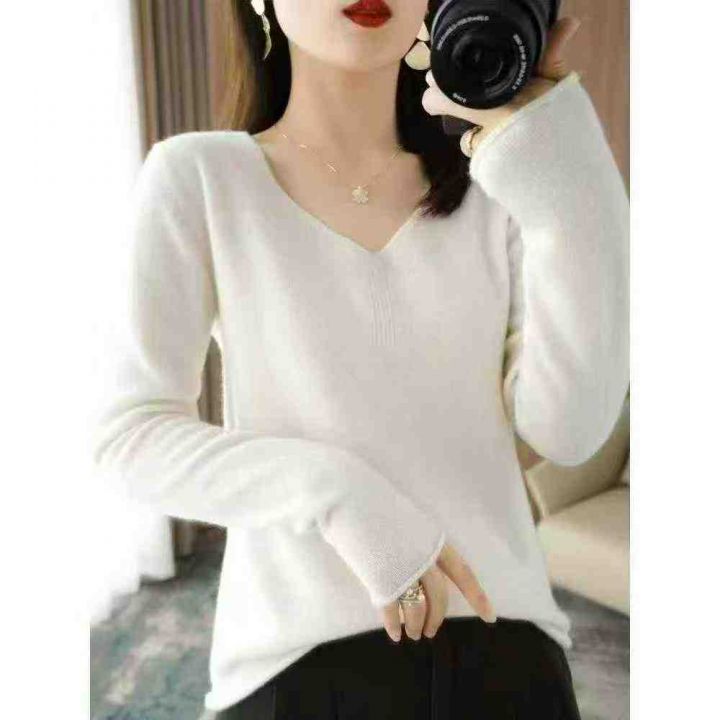 秋冬新款女装净版V领包芯纱套头毛衣,单款多色,面料软糯Q弹,独立包装均码...
