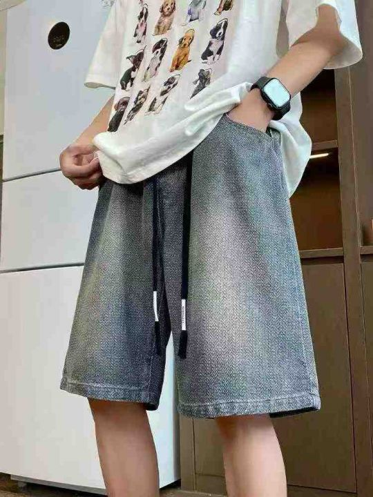 823款男士裤子夏季薄款星空纹水洗牛仔短裤男宽松百搭美式复古五分中裤,独...