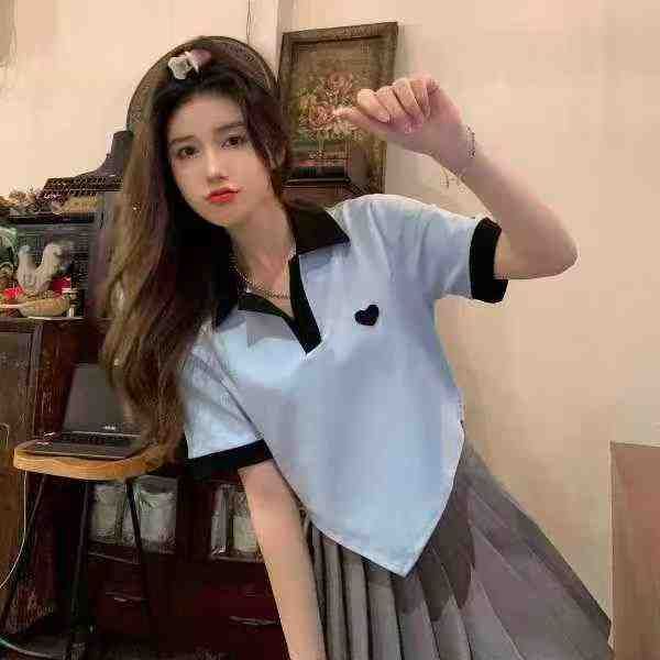夏季新款小众设计感不规则polo领甜美学院风针织小衫,独立包装,均码面料柔...
