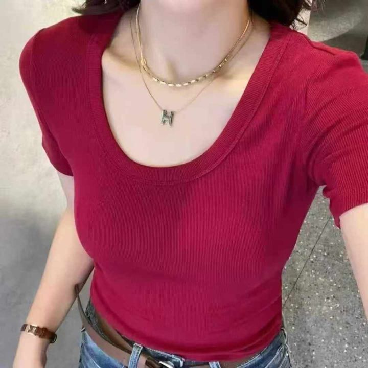 夏季新款软糯螺纹纯色打底衫时尚气质低领辣妹上衣,数量:649件,码数:S-M...