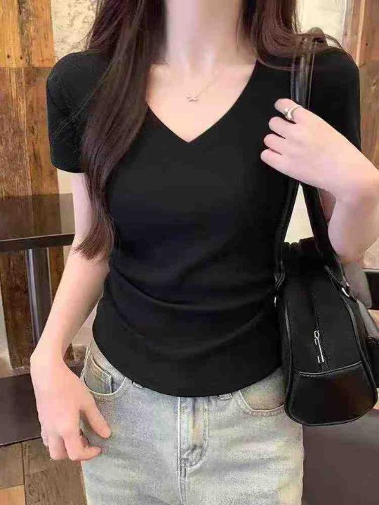 4.8元,靓妹纯欲风女百搭修身版V领辣妹短袖T恤,面料柔软亲肤有弹力,560件...