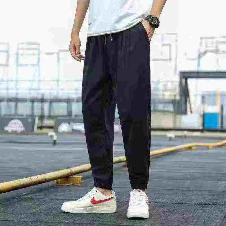 棉质情侣款休闲裤979件6.9,抽绳松紧腰,有口袋,拼接设计,裤脚可束脚,码...