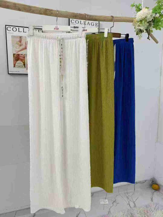 清7.8高腰抽绳纹理百褶阔腿裤女春夏季大码冰丝千千叶垂感拖地直筒长裤,数...