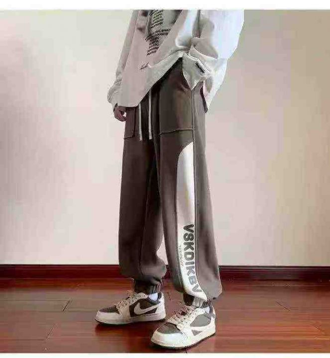 全清8.2分货+1男士秋季新款港风束脚卫裤潮牌拼色字母休闲华棉长裤,独立包...