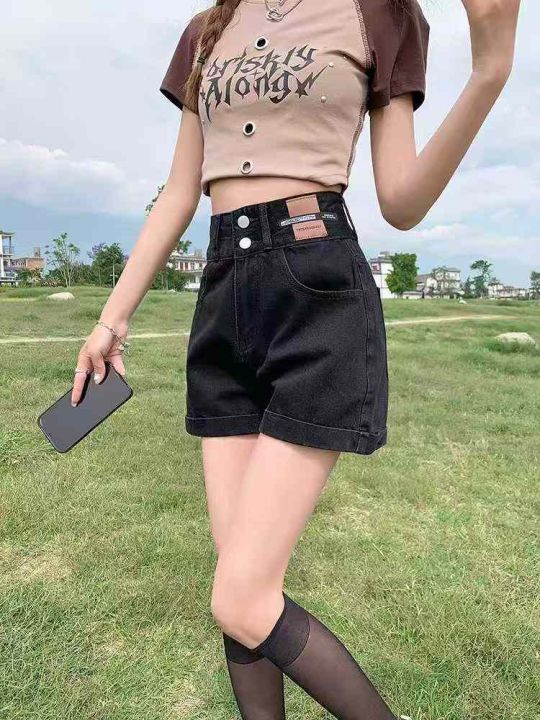 夏季新款潮流毛边宽松百搭显瘦辣妹美式a字阔牛仔短裤,独立包装带吊牌,码...