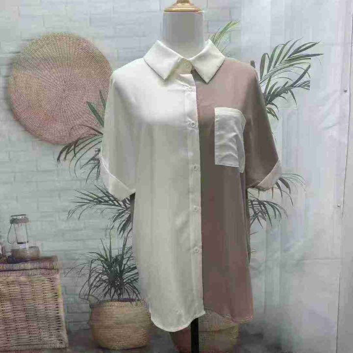 6.8元全清,大码女装短袖衬衫女设计感宽松显瘦休闲韩版拼接款,独立原包装...