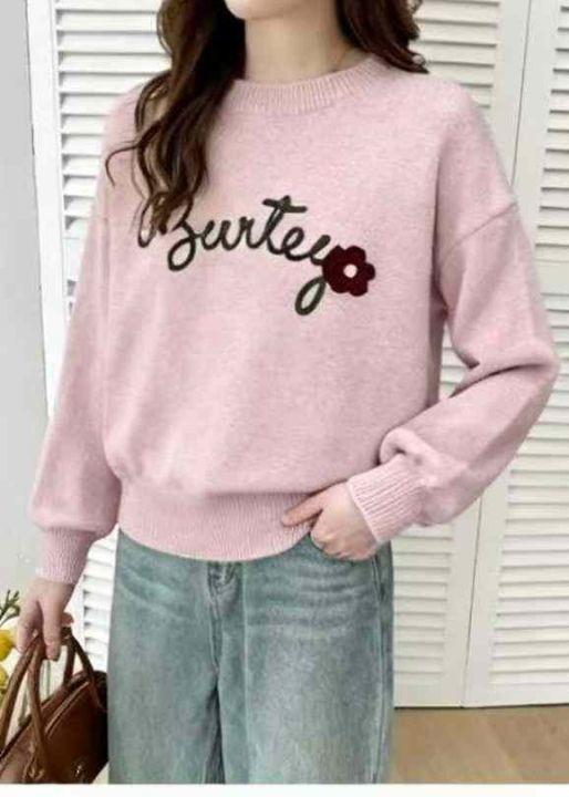 秋冬新款高品质女装重工刺绣圆领加厚包芯纱套头毛衣,独立包装,均码宽松版...