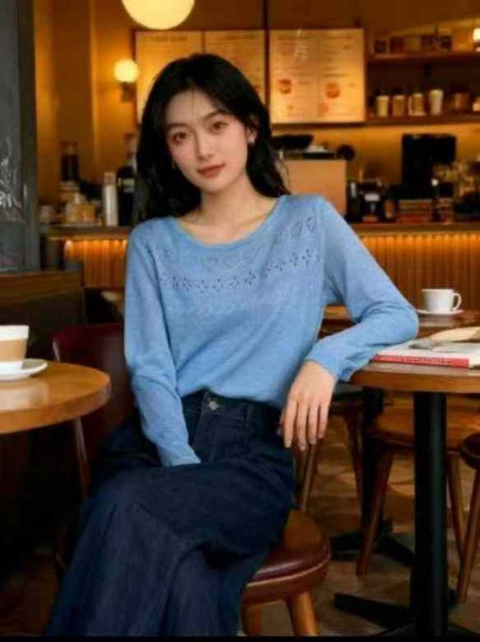 秋季新款美式辣妹镂空长袖弹力修身显瘦性感纯欲针织套头毛衣,独立包装有垫...