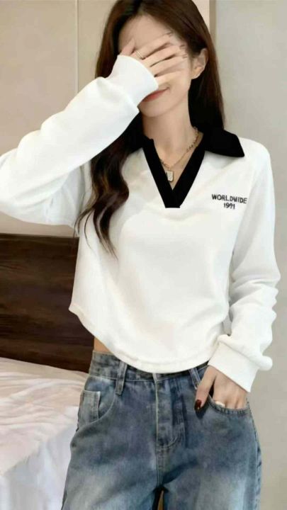 秋季新品撞色刺绣字母小清新百搭polo领针织套头毛衣,独立包装,均码面料柔...