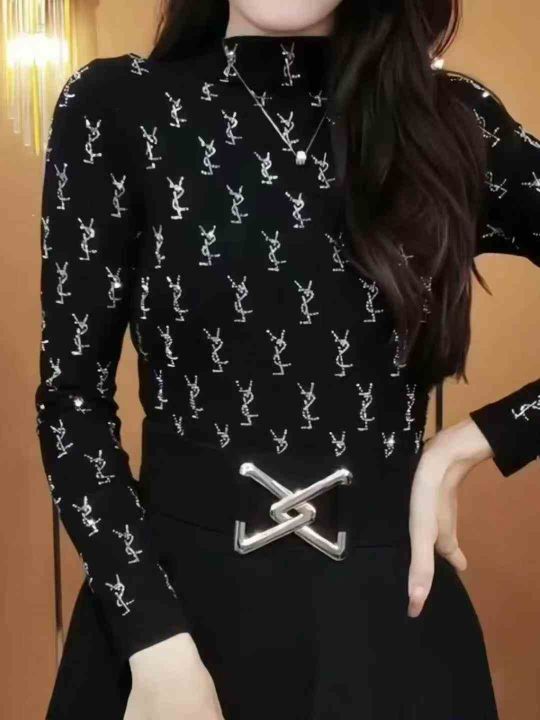 200件左右新款小衫半高领重工烫钻打底衫春秋冬款修身时尚长袖上衣百搭T恤,...