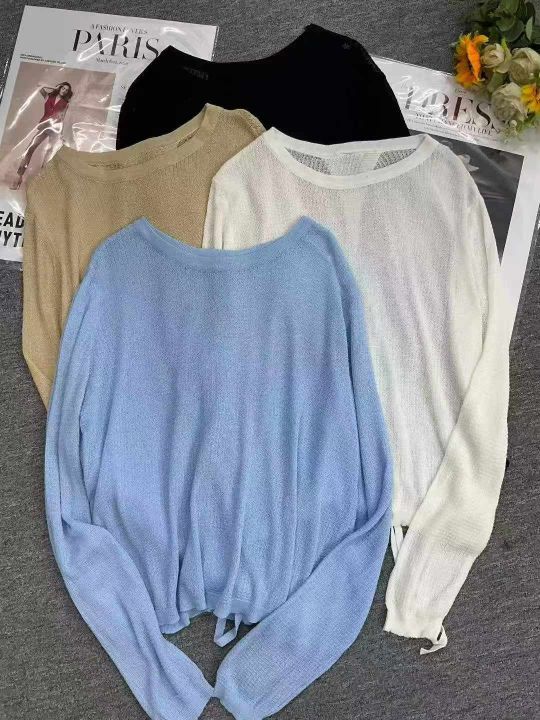 夏季新款时尚设计感后背开叉冰丝长袖针织小衫,独立包装,均码宽松款面料柔...