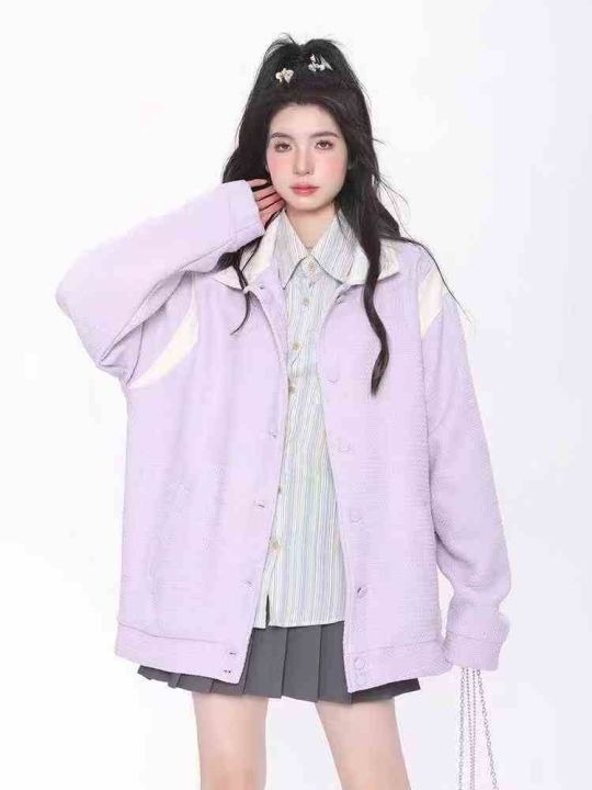 [月亮]:9.5清158件(不分货)[月亮]:香芋紫棒球服华夫格撞色外套[月亮]:...