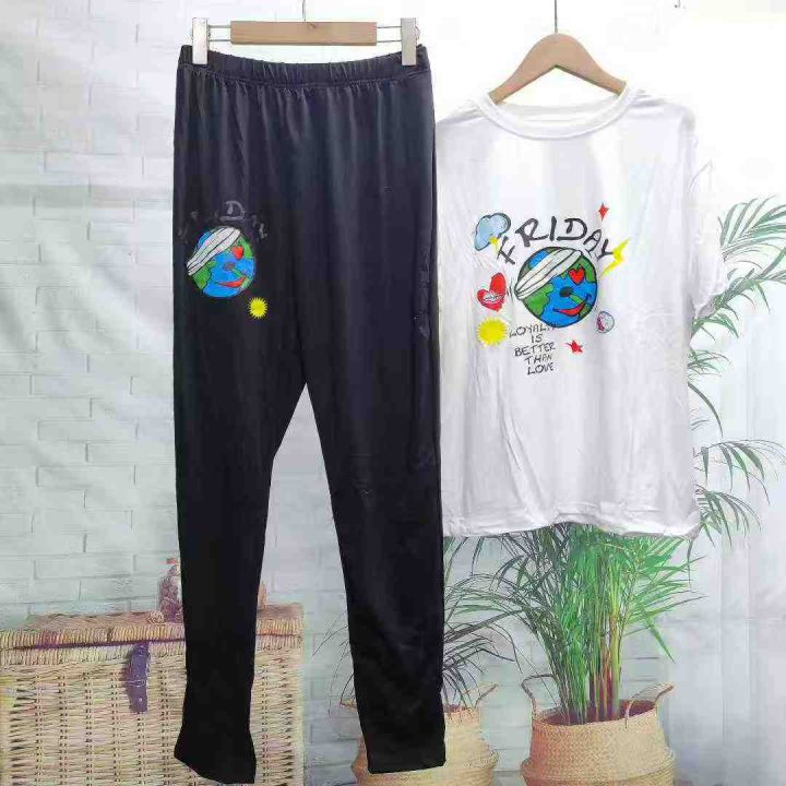 6.5元/套[爱心][爱心] 潮牌炸街男女同款个性印花上衣短袖宽松卡通休闲裤两...