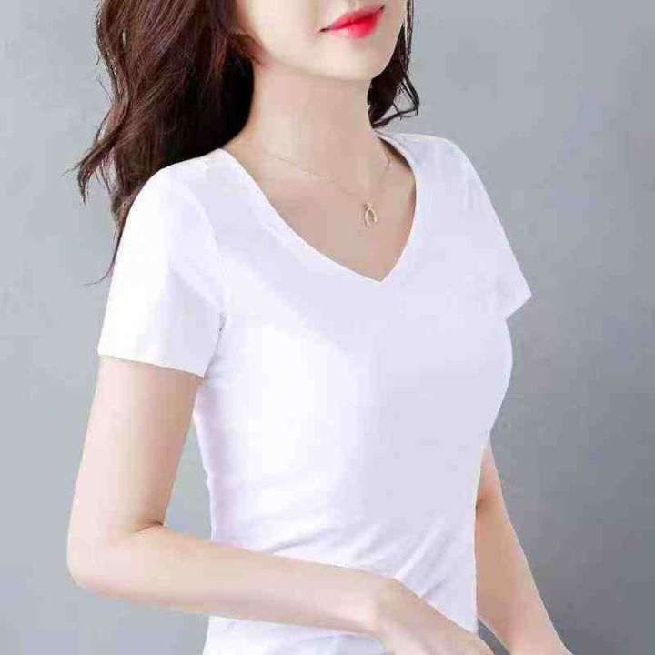 300件左右牛奶丝短袖T恤女夏季修身V领打底衫内搭短袖(红色只有几件)以白色...