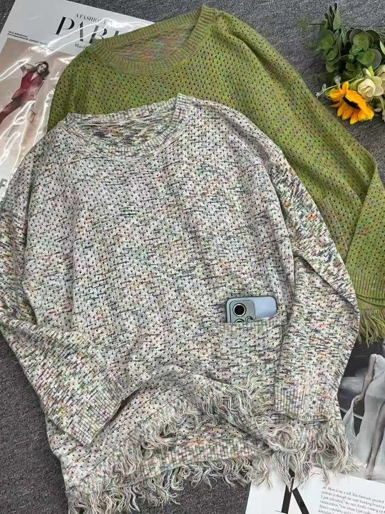 捡漏款,秋季新款法式小香风彩虹编织流苏圆领长袖宽松针织衫,独立包装,均...