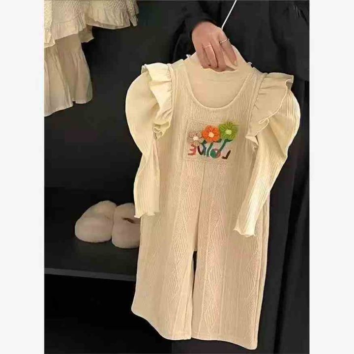 100多套2025新款春秋季儿童宝宝洋气花朵连体裤打底衫两件套,尺码4Y-7Y,高...