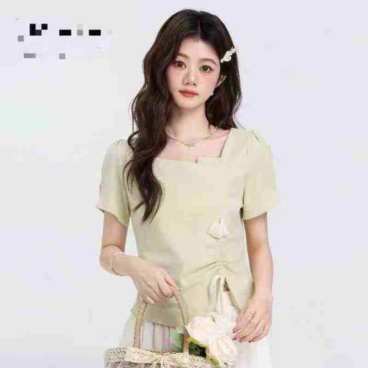 [月亮]:5.8清155件(不分货)[月亮]:韩系甜美不规则褶皱抽绳上衣[月亮]:...