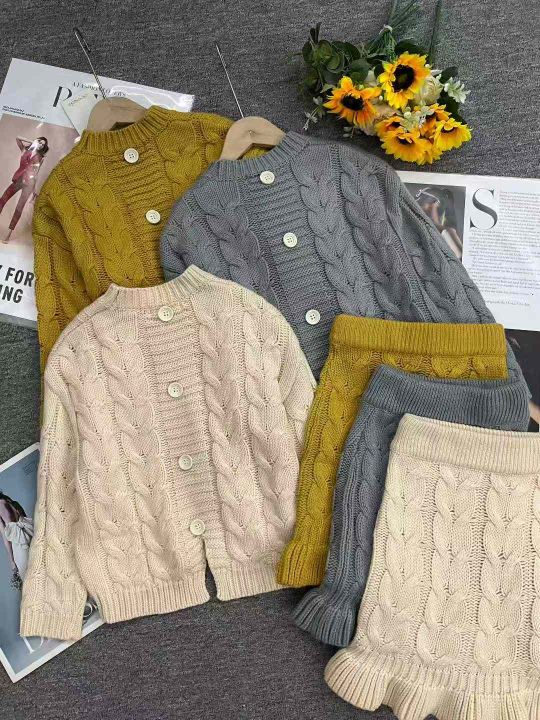 秋冬新款韩版童装麻花纹加厚粗针圆领套头毛衣+麻花纹加厚粗针荷叶边半身毛...