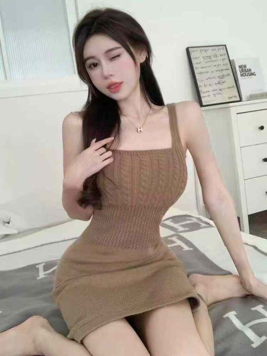 夏季新款纯欲风辣妹性感收腰显瘦仿雪尼尔针织包臀吊带连衣裙,独立包装,均...