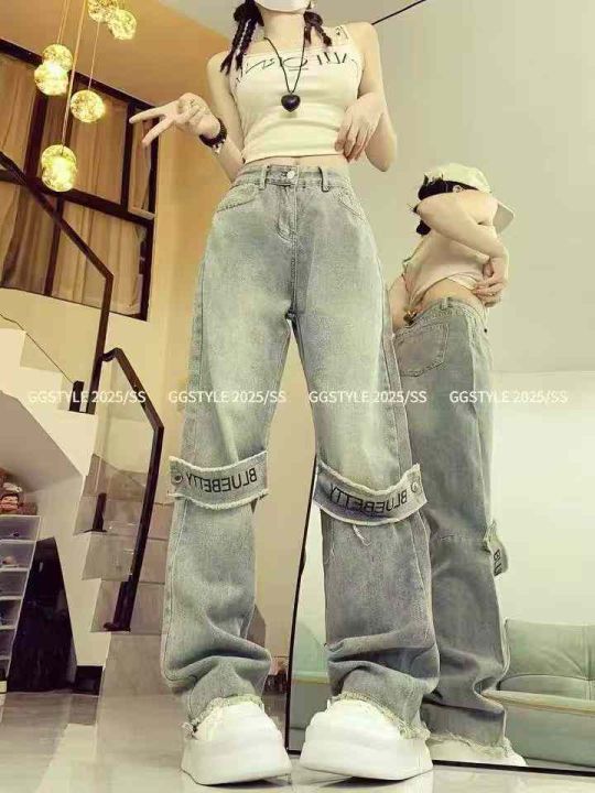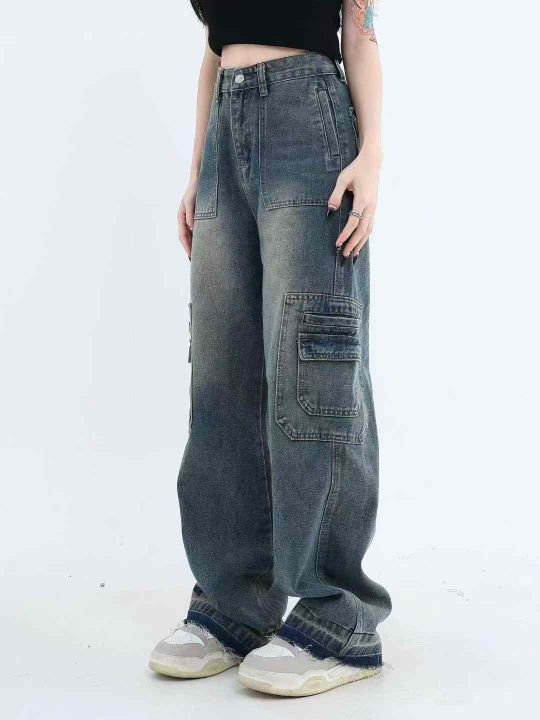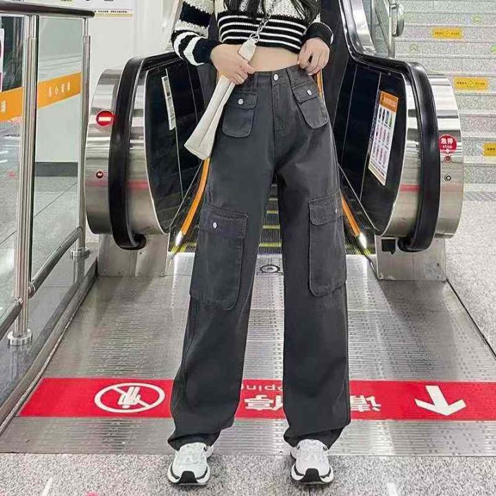 春秋新款高品质女装洗水棉多袋工装牛仔直筒阔腿裤,独立包装带吊牌,可穿85...