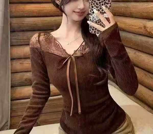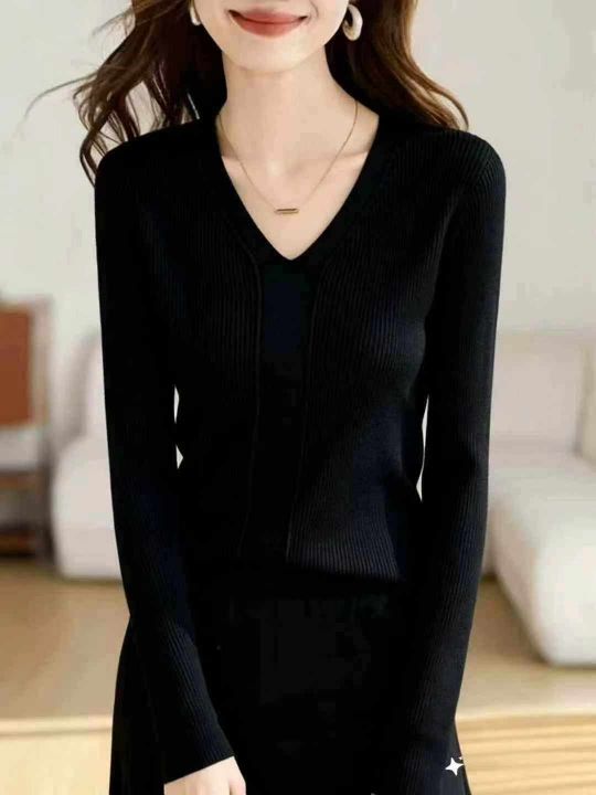 秋冬新款法式V领弹力修身高级显瘦气质打底通勤包芯纱长袖毛衣,独立包装,...