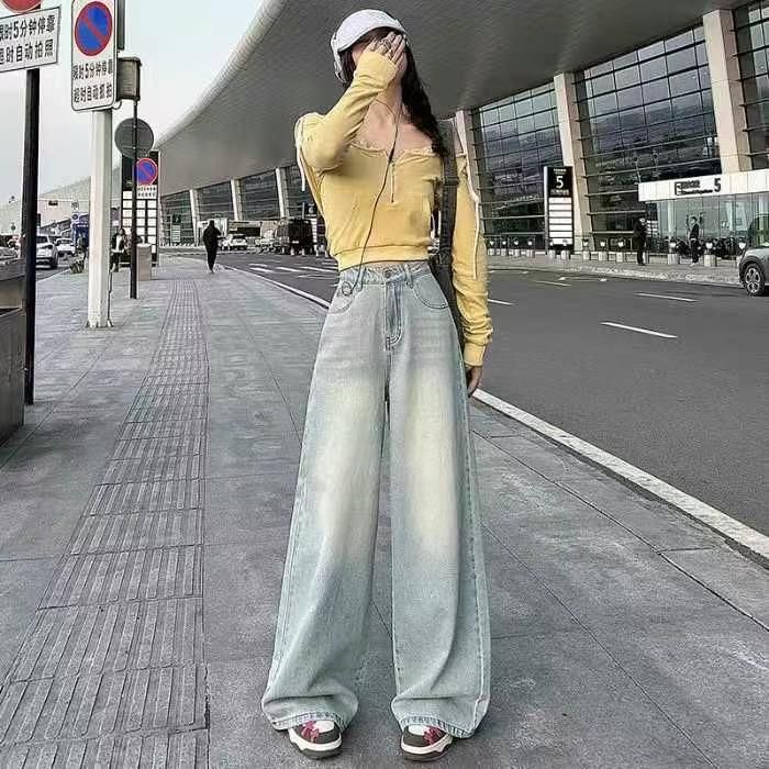春夏新款洗水棉复古蓝直筒阔腿牛仔长裤,独立包装带吊牌,码数XS--L码,510...