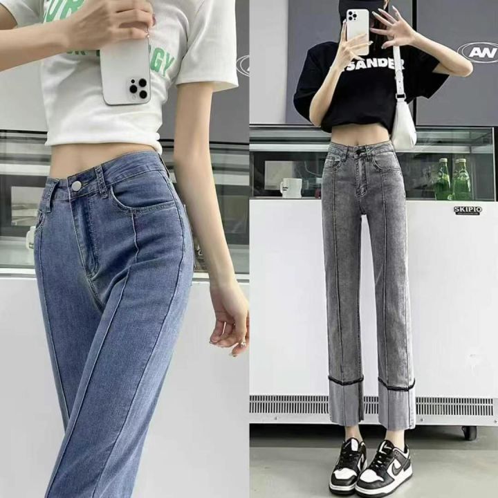 欧货港味高腰显瘦烟管弹力牛仔裤,整款2色,独立包装,数量95,福利价13.8...