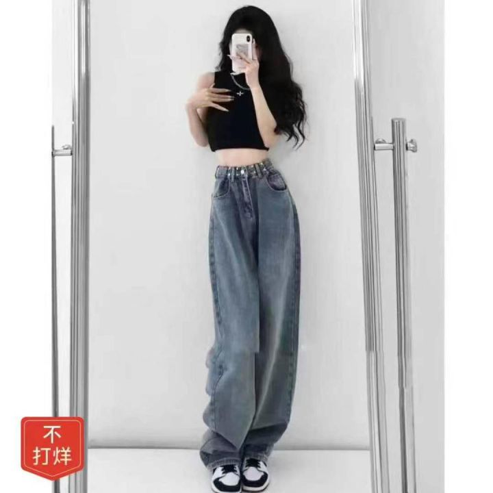 春夏新款女装可调节腰头宽松垂感直筒阔腿牛仔裤,独立包装,码数SM码(偏大...