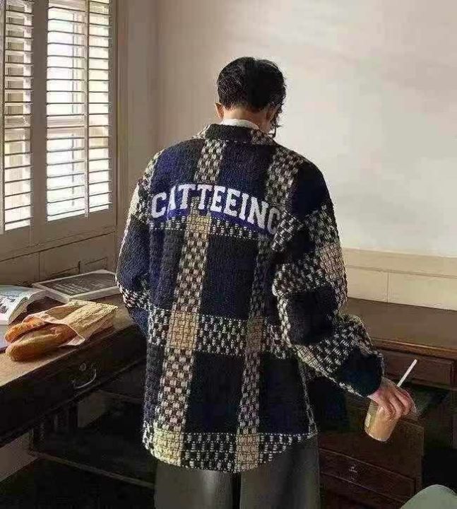 复古撞色编织格子外套271件,全清17.8,分货18.8,宽松版情侣款,品质,翻...