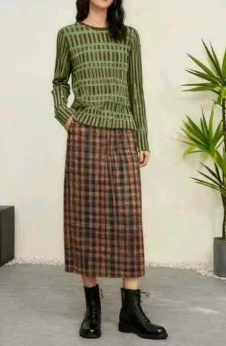 秋冬新款宽松弹力复古提花圆领包芯纱套头毛衣,独立包装,均码面料软糯舒适...