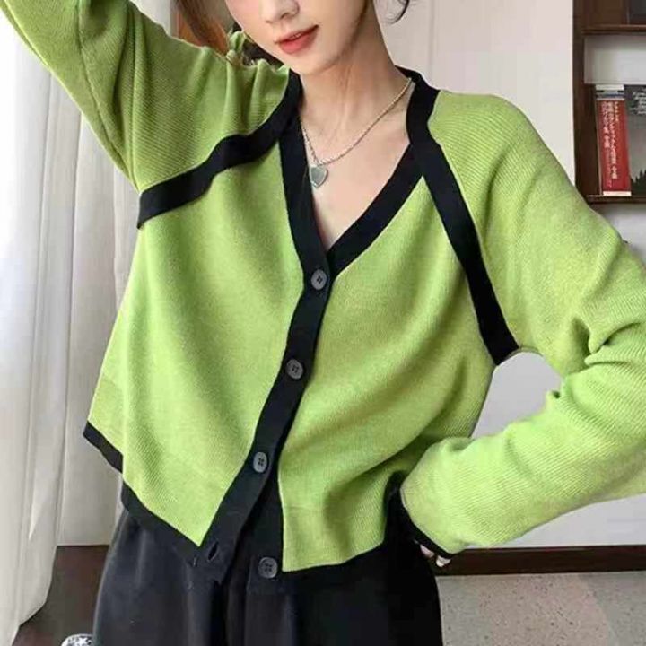 品牌原单宽松慵懒风短款小香风设计感撞色拼接粗针毛衣开衫,独立包装带吊牌...