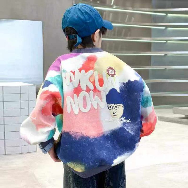 童装扎染卫衣154件3.9,面料柔软,后领包边,图案字母印花,码数120-150码...