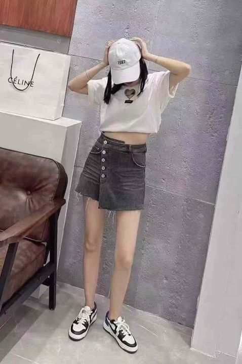 ☕️BISE黑灰色排扣牛仔裙裤女夏季新款韩版高腰百搭显瘦牛仔短裤73条全清7....