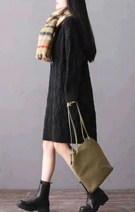 秋冬新款宽松慵懒风法式麻花加厚毛衣连衣裙,独立包装,均码面料软糯厚实,...