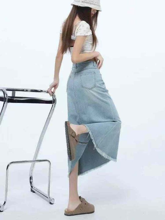 牛仔中裙☕️260条全清9.9分货+1 码数S到XL,独立包装,深蓝色牛仔半身裙女...