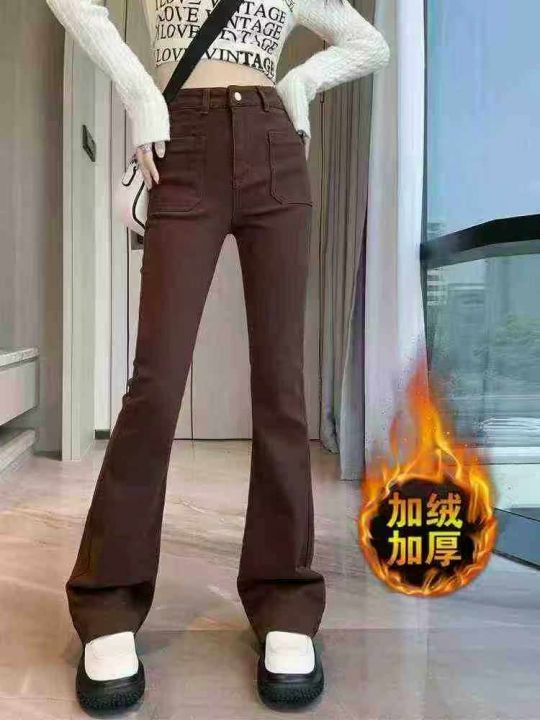 高腰加绒加厚微喇叭女土弹力牛仔裤,整款2个颜色,独立包装,S-XL码,数量2...