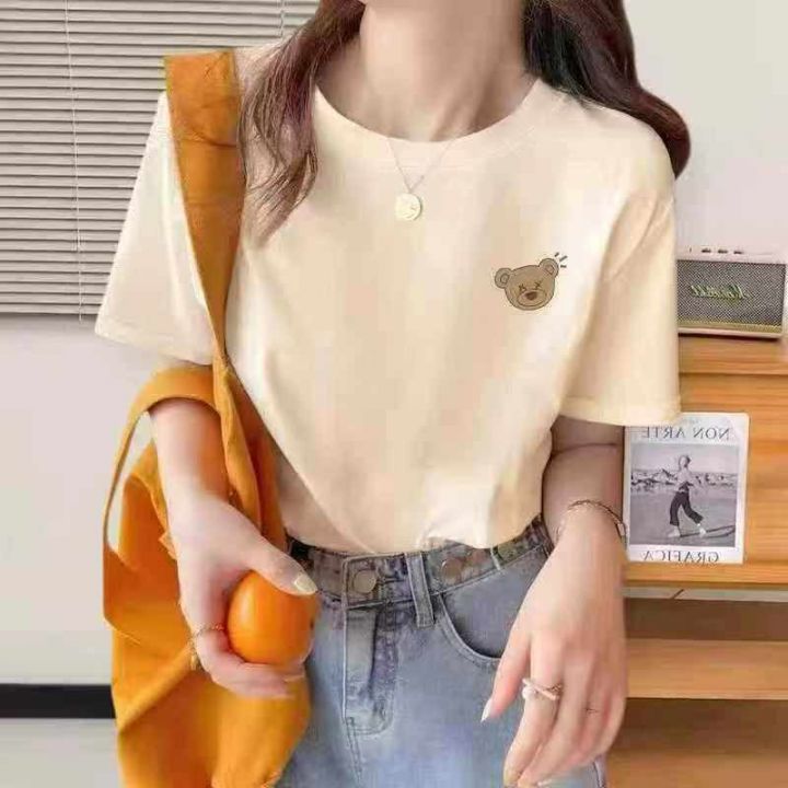 3.9清电商仓回收69件百搭显瘦减龄小熊短袖T恤女,码数S-XL。有后领包边到肩...